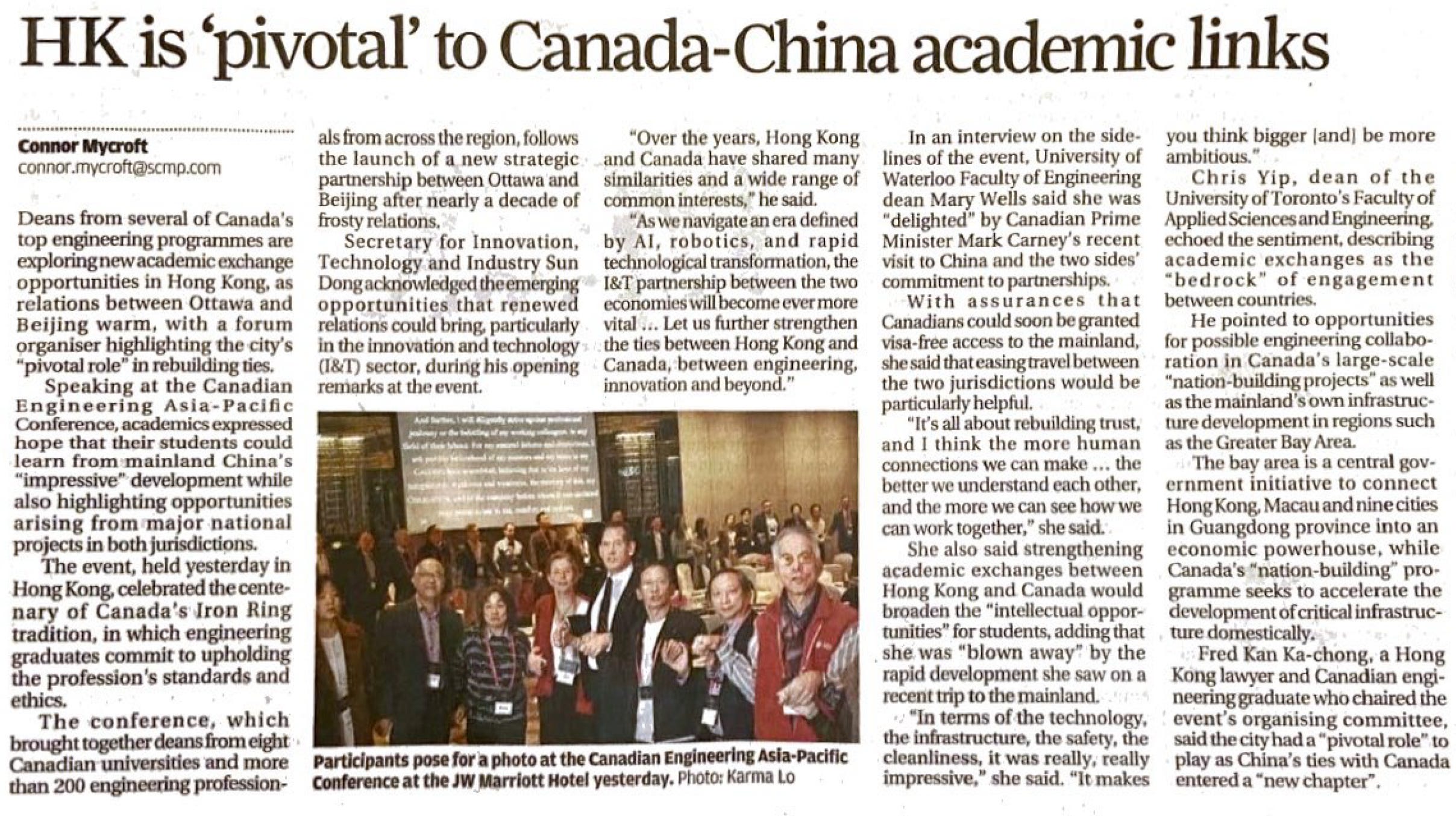 South China Morning Post (Jan 25, 2026 Print): HK is ‘pivotal’ to Canada-China academic links